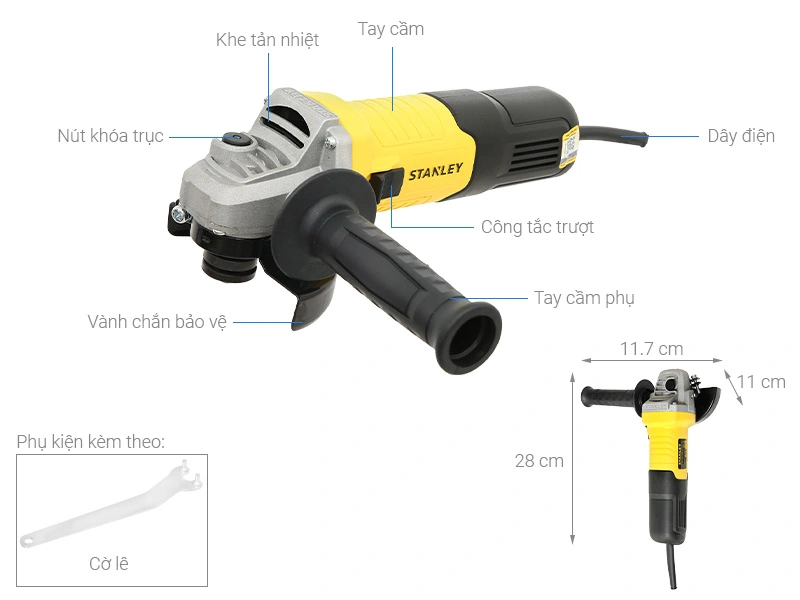 - Chiếc máy mài Stanley này hỗ trợ làm nhẵn bề mặt vật liệu, mài nhẵn các cạnh sắc, mối hàn và đánh bóng các chi tiết phẳng, các góc hẹp khó tiếp cận. Bên cạnh đó, Stanley STGS9100-B1 900W còn có thể cắt được một số vật liệu tiện lợi.
