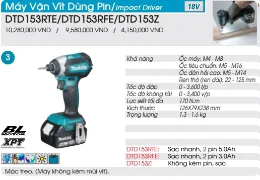 Bạn đang tìm kiếm một máy vặn vít đa năng, mạnh mẽ và tiện lợi để hoàn thành các dự án DIY hoặc công việc chuyên nghiệp? Hãy để chúng tôi giới thiệu đến bạn sản phẩm máy vặn vít dùng pin Makita DTD153RTE (kèm 2 pin 5.0Ah + sạc nhanh) – một sản phẩm đến từ thương hiệu nổi tiếng Makita. Với thông số kỹ thuật đa dạng và mạnh mẽ, sản phẩm này không chỉ giúp bạn dễ dàng vặn vít các loại ốc máy, ốc tiêu chuẩn, ốc đàn hồi cao và ren thô mà còn có khả năng siết chặt với lực siết tối đa lên đến 175 N·m. Máy có 5 chế độ tốc độ để bạn lựa chọn phù hợp với công việc và chế độ T giúp tăng cường hiệu quả đánh vít. Với kích thước nhỏ gọn, sản phẩm còn được trang bị móc treo giúp bạn dễ dàng mang theo và sử dụng khi cần thiết. Máy được sản xuất tại Trung Quốc và có bảo hành 6 tháng, cùng với phụ kiện đi kèm gồm sạc nhanh, 2 pin 5.0Ah. Sản phẩm này thật sự là một sự lựa chọn tuyệt vời cho các công việc vặn vít của bạn.