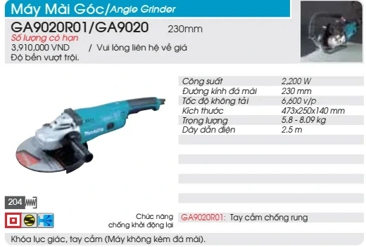 • Mã sản phẩm:Máy mài góc Makita GA9020