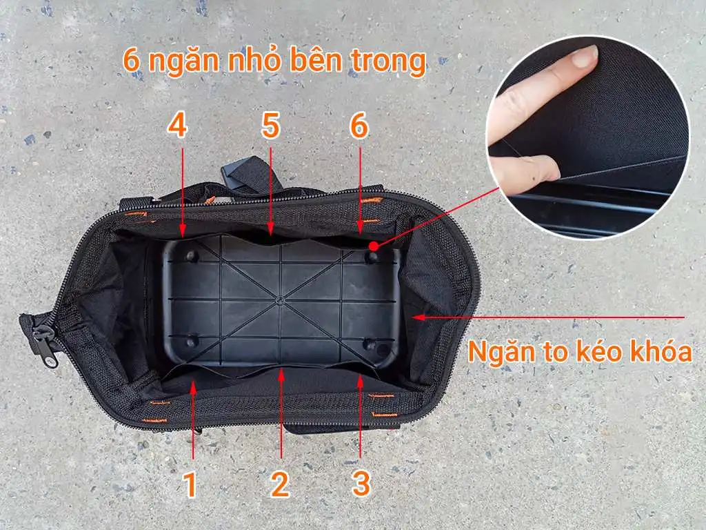 - Túi thiết kế các ngăn phụ cả ở bên trong lẫn bên ngoài thuận tiện cất giữ nhiều dụng cụ khác nhau