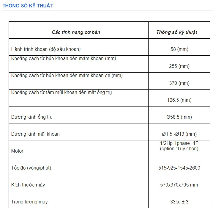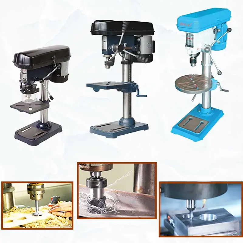 Máy khoan bàn chuyên dùng để gia công các loại lỗ thông hoặc không thông, gia công ren hoặc taro,... giúp khoan lỗ nhanh và cho lỗ khoan đẹp.