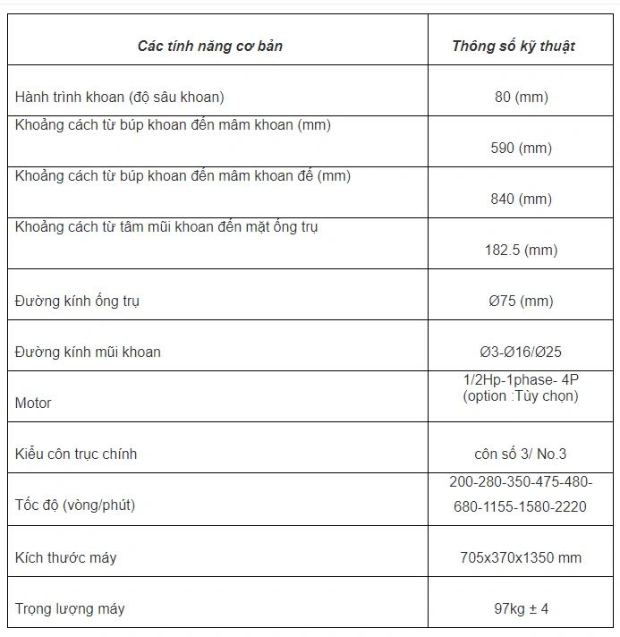 - Máy khoan bàn chuyên dùng để gia công các loại lỗ thông hoặc không thông, gia công ren hoặc taro,... giúp khoan lỗ nhanh và cho lỗ khoan đẹp.